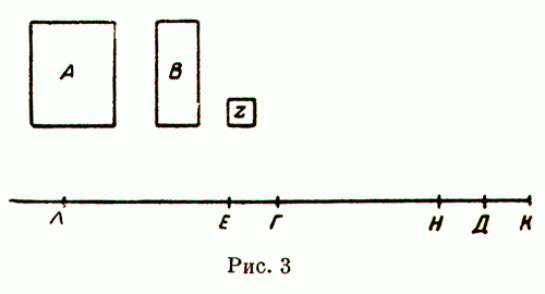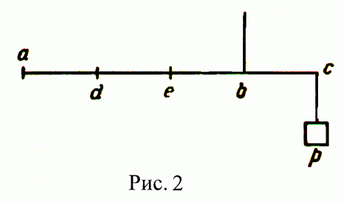 1) Если коромысло весов, первоначально находившееся в равновесии, затем выходит из него, то силы, приложенные к концам его, относятся друг к другу так же, как пути, проводимые этими концами. 2) Если весомое коромысло весов (рис. 2) подвесить не в середине, то, чтобы уравновесить собственный вес более длинного плеча, надо на более коротком подвесить груз, так относящийся к весу разницы между весами двух плеч, как расстояние между серединой отрезка, представляющего собой разницу между плечами и точкой подвеса, будет относиться к малому плечу. 3) Если на плече коромысла расположены четыре равных равно отстоящих друг от друга груза, то они могут быть заменены одним грузом, равным их сумме и помещенным в середине расстояния, которое они занимают на плече. 4) То обстоятельство, что коромысло весов есть весомый цилиндр, ничего не изменяет в поведении грузов. Весь характер этого отрывка и самая постановка вопрос о весомом коромысле свидетельствуют о том, что либо отрывок этот еще больше, чем предыдущие, искажен переводчиками, либо (и скорее всего) является произведением не античной, арабской или западноевропейской феодальной науки; поэтому мы упоминаем о нем только мимоходом и еще раз вернемся к нему ниже. Все рассмотренные нами отрывки могут быть, следовательно, названы античными и связаны с именем Евклида только сугубо условно. В дошедшем до нас виде они характеризуют другую среду и другую научную систему, но более чем вероятно, что все они выросли на каком-то античном, эллинистическом и притом предшествующем Архимеду фундаменте, почему мы и говорим о них в данном мосте. Можно было, конечно, и не упоминать о них при рассмотрении механики античности, но так как, даже не разделяя мнения Дюхема, нельзя все же абсолютно убедительно доказать его несостоятельность, то полное умолчание о целой группе сочинений, которые могут оказаться относящимися к данной эпохе, казалось нам недопустимым. Легко убедиться в том, что рассмотренные нами три отрывка, приписываемые Евклиду, содержат в себе тот же круг вопросов, который освещали и "Механические проблемы", именно: общетеоретические положения и основной закон движения — первый отрывок, доказательства закона весов (рычага) — второй, применение этого закона к реальным техническим объектам, в данном случае к физическому рычагу, или, вернее, к физическим весам, — третий отрывок. Однако, как мы это уже отмечали при разборе первого отрывка, самый подход к предмету значительно изменился. "Механические проблемы" — порождение расцвета греческого общества — обнаруживают еще теснейшую и органическую связь всего построения механики и отдельных ее формулировок со всей философской, космологической системой, наиболее полно отраженной в философской энциклопедии Аристотеля, и, с другой стороны, обнаруживают исключительно живой и проникающий во все детали интерес к проблемам техники, правда, не пытаясь воздействовать на нее. Псевдоевклидовские отрывки датируются Дюхемом III до н. э. Это время ширящегося омертвения греческого общества, когда, при сохранении внешнего благосостояния, высшие слои его теряют реальное руководство жизнью. Порожденные этим временем отрывки обнаруживают стремление сделать самостоятельными отдельные науки и отдельные научные проблем" вырвать их из общей философской связи, свести кажд