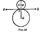"Но если середина передней стороны стержня будет ограничена плоскостями с разным наклоном, тогда она будет опускаться в сторону меньшего наклона, как rsf" (рис. 37; С. А. 66 v. а.). Высказанное здесь утверждение, невидимому, является результатом наблюдения различных случаев падения очень легких тел, для которых оно примерно правильно. Но, выраженное в общей форме, оно делается ошибочным, что, вероятно, впоследствии заметил и Леонардо, правда, насколько нам известно, не отметивший этого в своих записях.Несравнимо большее значение, чем разбор частных случаев падения тел с неподпертой центральной линией, имеет в механике Леонардо разбор поведения весомых тел с подпертой центральной линией или тел, подпертых вне этой центральной линии. Из разобранного выше определения центра приобретаемой тяжести явствует, что тело, укрепленное за этот центр или подпертое по центральной линии, находится в равновесии, т. е. не имеет никакого движения, если к нему не приложена какая-нибудь сила. Если же тело подвешено или подперто вне своей центральной линии, то оно приходит в движение, так как одна его более тяжелая часть непременно тянет вниз более легкую. Здесь следует, однако, рассматривать два случая: случай сферического тела и случай тела или системы тел другой формы. "Совершенно сферическое тело, лежащее на совершенно ровной плоскости, не будет иметь никакого движения, если только ты его ему не сообщишь. Причина же этому та, что все его части одинаково отстоят от центра, почему они всегда остаются на весах, а весы, имеющие плечи, одинаковые по весу и по длине, остаются без движения, а так как в этом сферическом теле обе половины равны, то оно должно оставаться неподвижным" (А. 22 r.). Эта запись подводит нас вплотную к теории весов, которую мы будем подробно разбирать в следующей главе; в данной же связи она интересна для нас тем, что является как бы переходным звеном к высказываниям Леонардо, нередко трактуемым исследователями как первые формулировки закона инерции. Действительно, на стр. 246 r. а. "Атлантического кодекса" Леонардо записывает: "Сферическое тело не остановится на плоскости, если линия, которая идет между центром мира и центром этого сферического тела, не будет проходить через точку соприкосновения между сферическим телом и плоскостью, на которой оно лежит, и не будет пересекать под прямым углом линию названной плоскости. "Доказывается это так: пусть (рис. 38) an будет сферическим телом, bc пусть будет плоскостью, на которой оно лежит, и остановится оно тогда, когда центральная линия, идущая от центра мира к центру сферического тела, пройдет через точку соприкосновения между сферическим телом и названной плоскостью, и остановится потому, что части сферического тела имеют равный вес вокруг центральной линии, и по положению, которое гласит: "вещи, равные между собой, не превосходят друг друга"; получается, что это сферическое тело не может само собой сдвинуться с этого места". Короче, но в том же смысле выражается запись кодекса "А": "Совершенное сферическое тело, помещенное на совершенной плоскости, не будет иметь никакого движения, если ты ему его не дашь" (А. 22 r.). В этих двух записях говорится, что сферическое тело, центр тяжести которого подперт, не имеет никакого естественного движения, находясь на ровной горизонтальной плоскости, т. е. стремится сохра