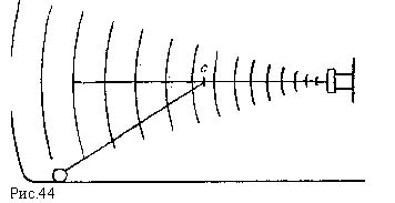 "Причина этого та, что когда вес отделяется от силы своего двигателя, то хотя он расстался с нею в первой степени своей силы (p), тем не менее, встречая неподвижный воздух, он ветре. чает его в первой степени его сопротивления, и хотя этот воздух имеет большую сумму сопротивления, чем сила толкаемого в нем веса, тем не менее, толкая малую часть его, вес оказывается победителем. Поэтому он изгоняет его (воздух) из его места и, изгоняя его, замедляет несколько его скорость. Итак, этот воздух, будучи толкаем, толкает и гонит другой и вызывает за собой круговые движения, центром которых постоянно является движущийся в воздухе вес. Движения эти подобны кругам, производимым в воде и имеющим центром место, ударенное камнем. И там один круг гонит другой, и воздух оказывается весь приготовленным к движению по одной линии перед двигателем. Движение же растет тем более, чем больше к нему приближается гонящий его вес. Потому, встречая меньшее сопротивление воздуха, этот вес с большей скоростью удваивает свой бег, подобно барже, тащимой по воде, которая при начале движения движется с трудом, хотя бы ее двигатель и имел наиболее могучую силу; когда же вода начинает приходить в движение изогнутыми волнами, тогда баржа, следуя за этим движением, встречает мало сопротивления, почему двигается с большей легкостью. "Так и ядро, встречая малое сопротивление, "продолжает начатый бег до тех пор, пока, будучи несколько покинуто первой силой, не начнет ослабляться и склоняться вниз, почему, так как оно меняет направление своего бега, то бегство, приготовленное перед ним бегущим воздухом, больше не помогает ему, и чем больше оно склоняется, тем больше разных сопротивлений воздуха оно находит и тем более замедляется, до тех пор, пока, вернувшись к естественному движению, оно опять не получит большую скорость, подобно тому, как баржа, также поворачиваясь, также теряет скорость своего движения. "Итак, я заключаю, основываясь на