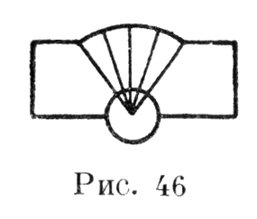 Или: "Я утверждаю, что тот удар имеет наибольшую степень своей силы, который ударяет предмет между равными углами рис. 47). "Это происходит оттого, что когда центры сил (р) находятся на прямой линии, удар производит большее действие (efichacia), потенций же (р), вызывающих это действие/три, а именно: сила (f), вес и движение. И когда передняя часть ядра ударяет в стену и находится на одной линии с этими центрами, то она равномерно окружена всей суммой потенций (р), ибо эта часть находится на одной линии с центром ядра, и так как эти части весомы, то все они оказывают воздействие (fanno forza) на ударенное место.