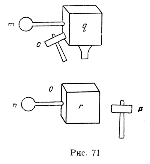 "Удар (рис. 71). Если ты ударишь молотком о куб q, то железо т выскочит".