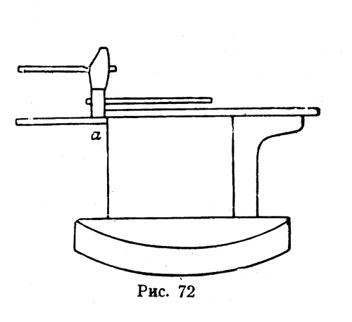 "Если ты ударишь молотком р куб r то железо n войдет в этот куб" (С. 5 v.). Или: "Удар (рис. 72) разрежет полосу железа, помещенную на наковальне в точке а, а вес или сила никогда этого не сделали бы" (С. 7 r.).