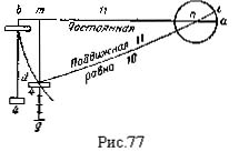 "О движении. Вес растет настолько, насколько а (рис. 77) поднимается к с. То же отношение, которое существует между расстоянием тn и расстоянием nb, имеет вес, опустившийся в d, с весом, который это d имело в положении b, а из этого следует, что если тn есть 9/10 nb, то вес, опустившийся в d, есть 9/10 веса, который он имел в месте b" (Е. 72 v.). Если мы вспомним предисловие к перипатетическому варианту трактата Иордана, то легко обнаружим, что приведенная выше запись есть именно попытка наглядно представить себе просто постулируемую и численно не выражаемую Иорданом зависимость между весом, кривизной и длиной дуги, по которой груз движется. При этом Леонардо, хотя и не вполне четко, сводит эту зависимость к расстоянию груза до вертикали, проходящей через точку опоры, чего отнюдь не делали трактаты "De ponderibus" и что он, как мы увидим ниже, широко применяет при разборе коленчатого рычага. Такую же попытку разобраться в физическом смысле понятия "приобретаемого веса" или "веса по положению" представляет, по-видимому, и другая запись того же кодекса: "О двигателе или движимом. Сила двигателя всегда больше, чем сопротивление движимого. "О рычаге и противорычаге. Настолько прибавляется приобретаемый вес двигателю, помещенному в конце рычага, насколько движимое, помещенное на конце противорычага, превосходит его естественным весом. "И настолько больше будет движение двигателя, по сравнению с движением движимого, насколько приобретенный вес этого двигателя превосходит его естественный вес. "Доказывается это так: пусть движение двигателя (рис. 78) будет из b в d и движение движимого из а в с; я утверждаю, что движение bd будет настолько больше движения ас, насколько приобретаемый вес b превосходит вес d; превосходит же он его на один, а, следовательно, также естественный вес..." (Е. 58 v.)