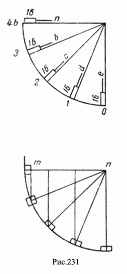 "Но если плотное тело будет тереться по направлению к более высокому положению наклонного места, тогда движение сделается тем более тяжелым по сравнению с вышеупомянутым движением, насколько противоположное движение более легко. Следовательно, настолько растет трудность с одной стороны, насколько она уменьшается с другой (рис. 235). "Подсчет трений. Вес n (рис. 236) отдает от себя сопротивление, равное четверти своей естественной тяжести, т сопротивляется восьмой частью своей тяжести, о сопротивляется шестнадцатой частью, р не сопротивляется, ибо в нем трение уничтожено. Но, чтобы сказать лучше, n сопротивляется четвертью своего естественного веса, т сопротивляется половиной четверти, о сопротивляется четвертью вышеназванной четверти, р не сопротивляется ничем, ибо четверть названной четверти уничтожается при движении, производимом от о к р, которое есть четверть" (Е. 78 r. и v.).