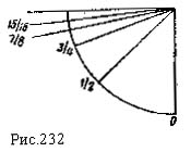 "На линии тп показаны степени приобретения или потери веса в силе (р) его двигателя. "Настолько, насколько уменьшается вес у двигателя, настолько увеличивается трение; и насколько уменьшается трение, настолько растет вес. Но эти увеличения и уменьшения весов сами по себе не пропорциональны увеличениям и уменьшениям трения, так как они не измеряются по одной и той же природе. "Этот рисунок (рис. 232) показывает степени силы трения весов, тащимых (tirali) по разным наклонностям, и трение никогда не будет четвертью тащимого веса, за исключением тех случаев, когда этот вес будет передвигаем по горизонтальной линии, и происходит это оттого, что степени увеличения веса равны только в начале и в конце, но рождаются в противоположных местах.