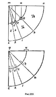 "Заключение. Я утверждаю, что вес т весит по линии те только половиной своей тяжести. А следовательно, так как трение всегда сопротивляется четвертью такой тяжести, то это трение достигает половины этой силы (р)" (Аr. 187 r.). Очень близкую по содержанию запись мы находим в более позднем кодексе "Е". "Положение трущихся тел (рис. 233). Таковы наклонности меньшие, чем gh, каковы большие, либо столько же треугольников с равными основаниями и длинами (lungheze) можно построить в треугольнике fgh, сколько и в треугольнике ghl.